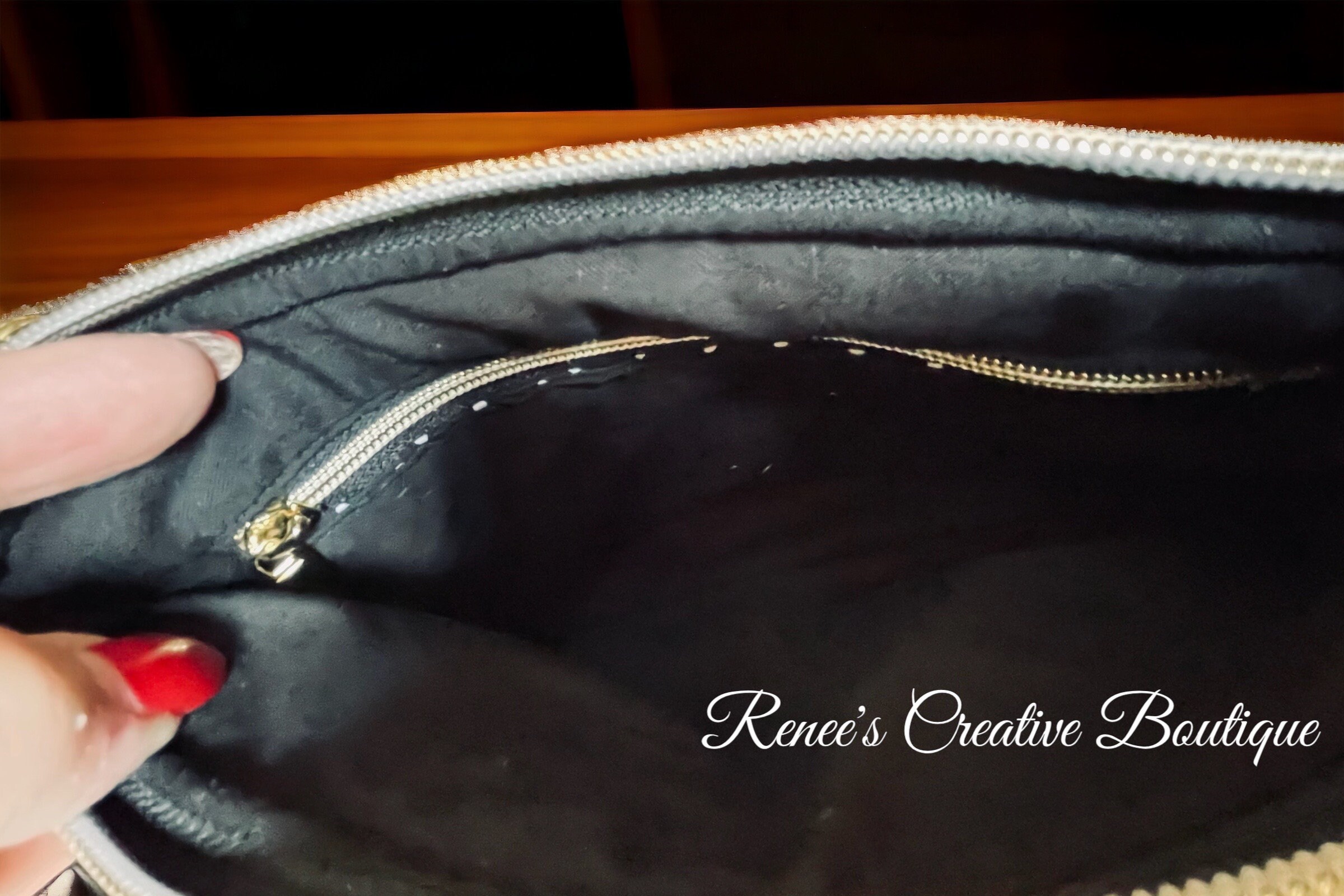 This purse is designed with red baseball cotton fabric and black faux leather. It is the perfect sports bag for the any Reds fan. The strap is 40" in length and adjustable to be worn as a shoulder bag or crossbody. The purse includes an exterior and interior zipper and includes gold triangle rings and swivel hooks. The purse is 11" x 7" and is 2" wide at the base.
