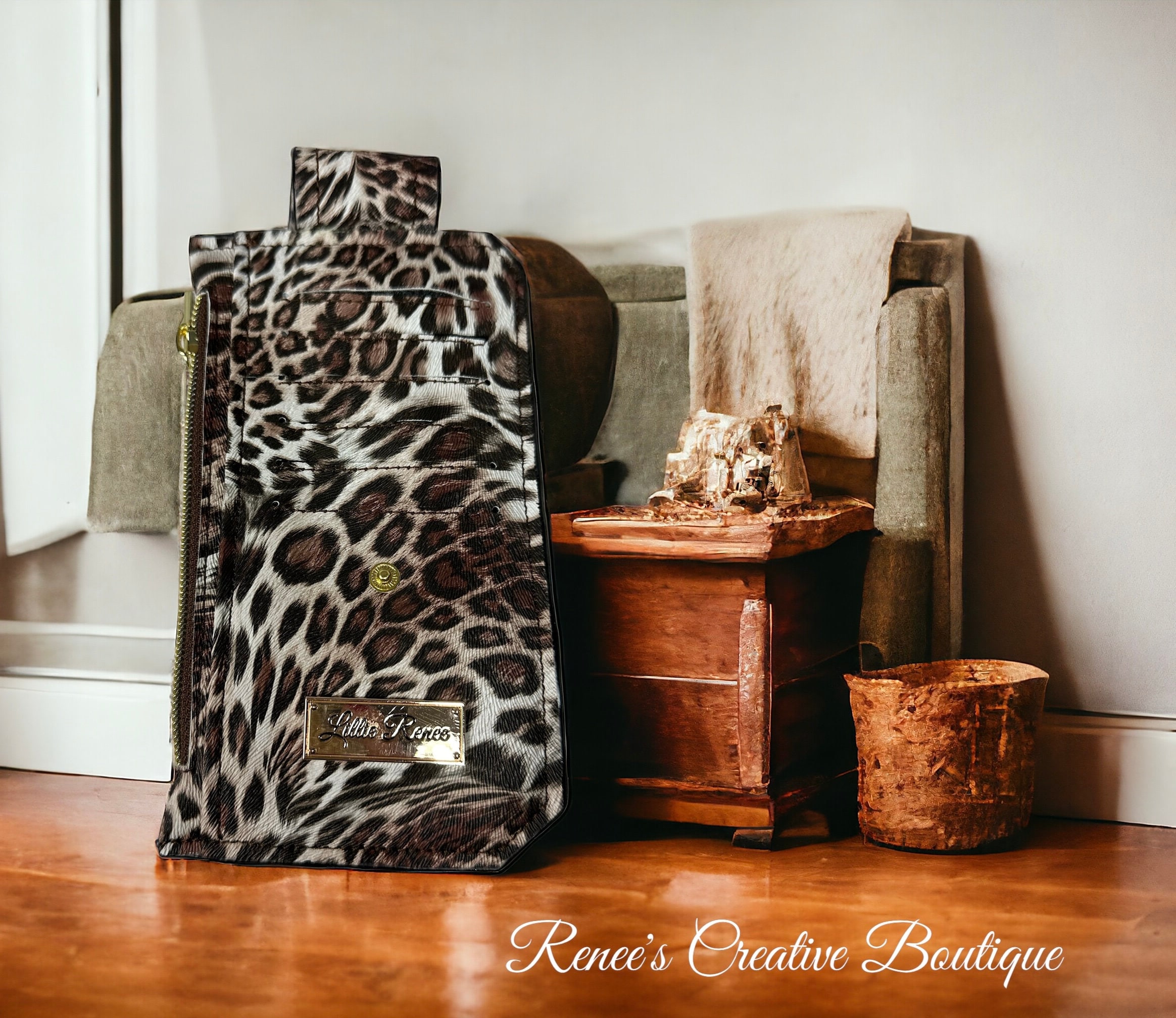 This slimline wallet fits almost anywhere yet has 6 card slots that holds more than 6 cards, a zipper pocket for change and a slip pocket. It is 4" x 7"