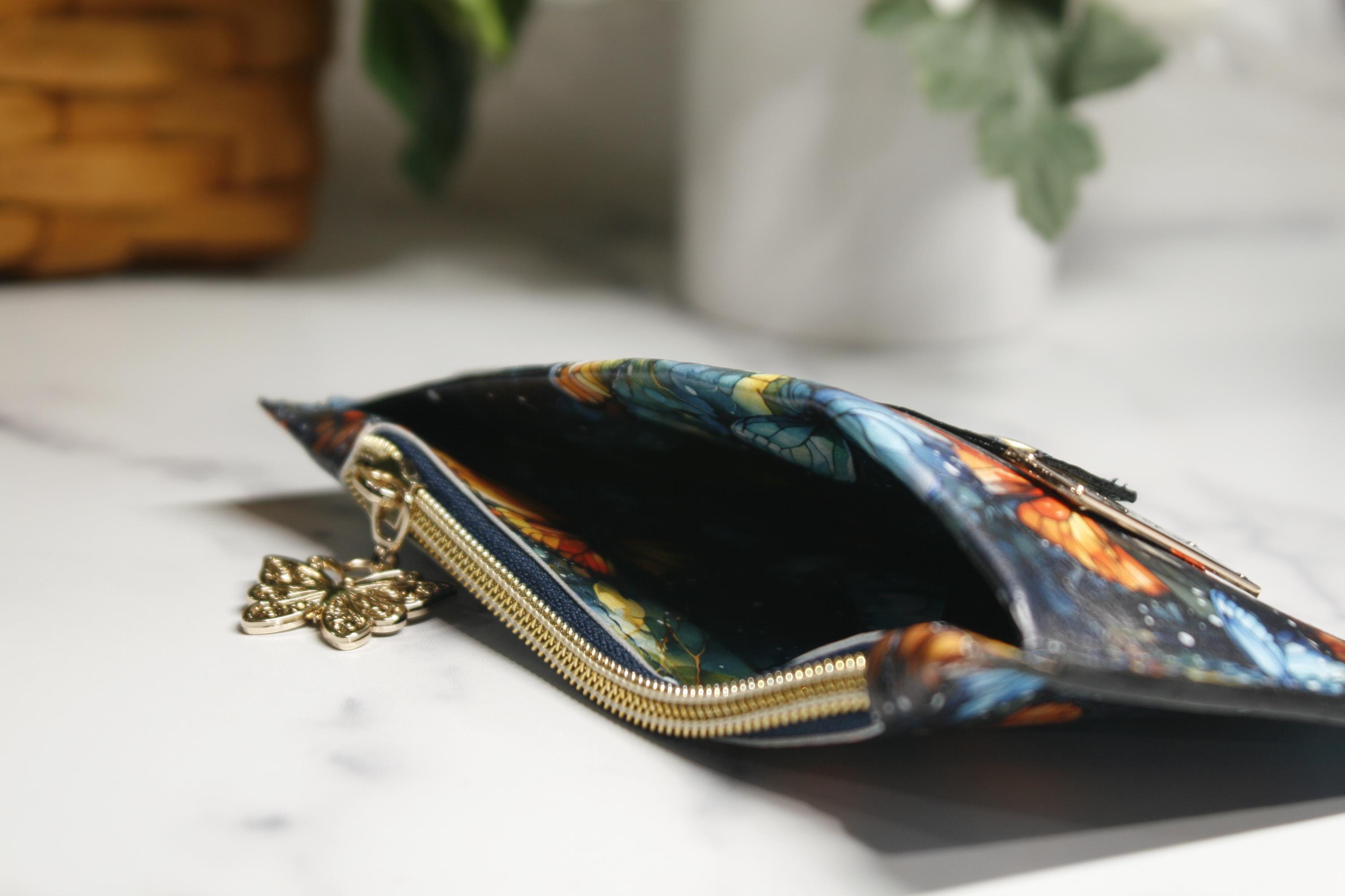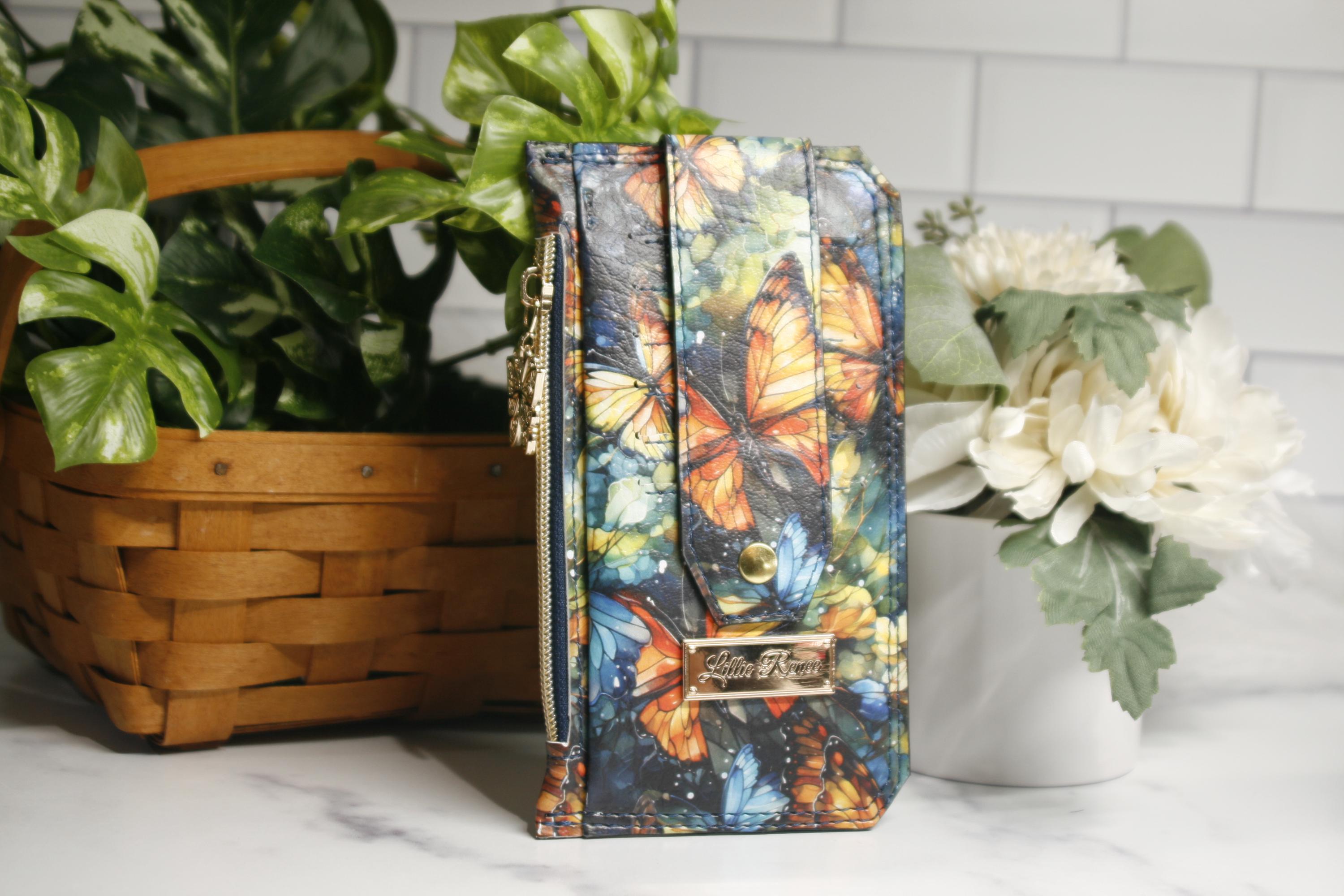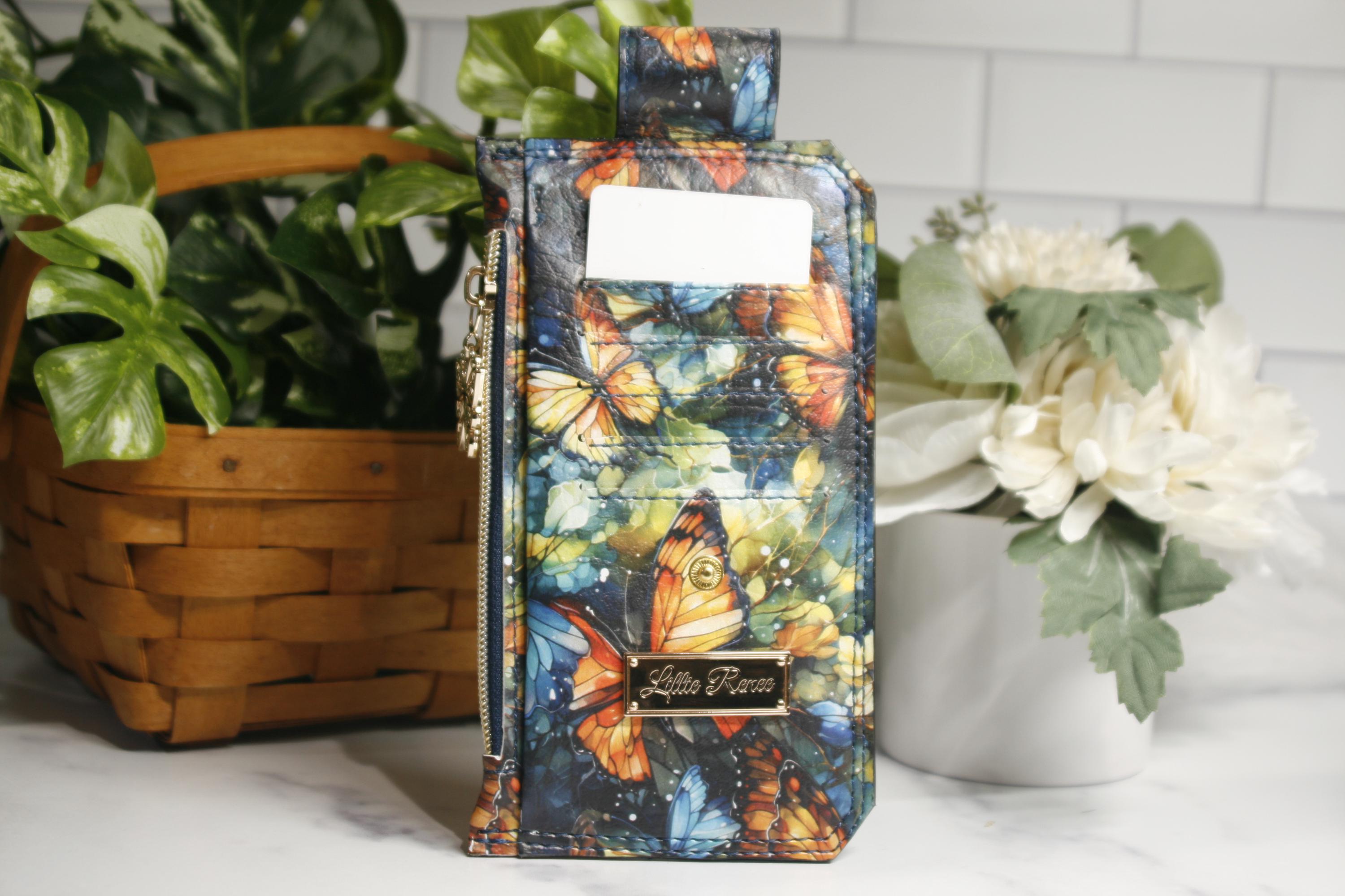 This beautiful slim wallet features watercolor butterflies. Comes with a zippered coin pocket, slip pocket and 6 card slots. Perfect gift idea for any occasion.