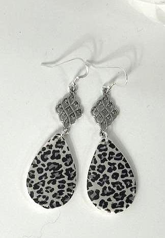 Double your style options with these two Leopard Print Earring Set, featuring two best-selling shapes—classic teardrop and modern hexagon—in a bold yet neutral black, gray, and white animal print.