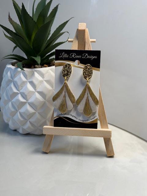 Make a statement with these Long Fan Polymer Clay Earrings, beautifully accented with touches of gold for a modern, elegant look. Each pair is handcrafted from premium polymer clay, shaped into a graceful fan silhouette that radiates sophistication and charm.