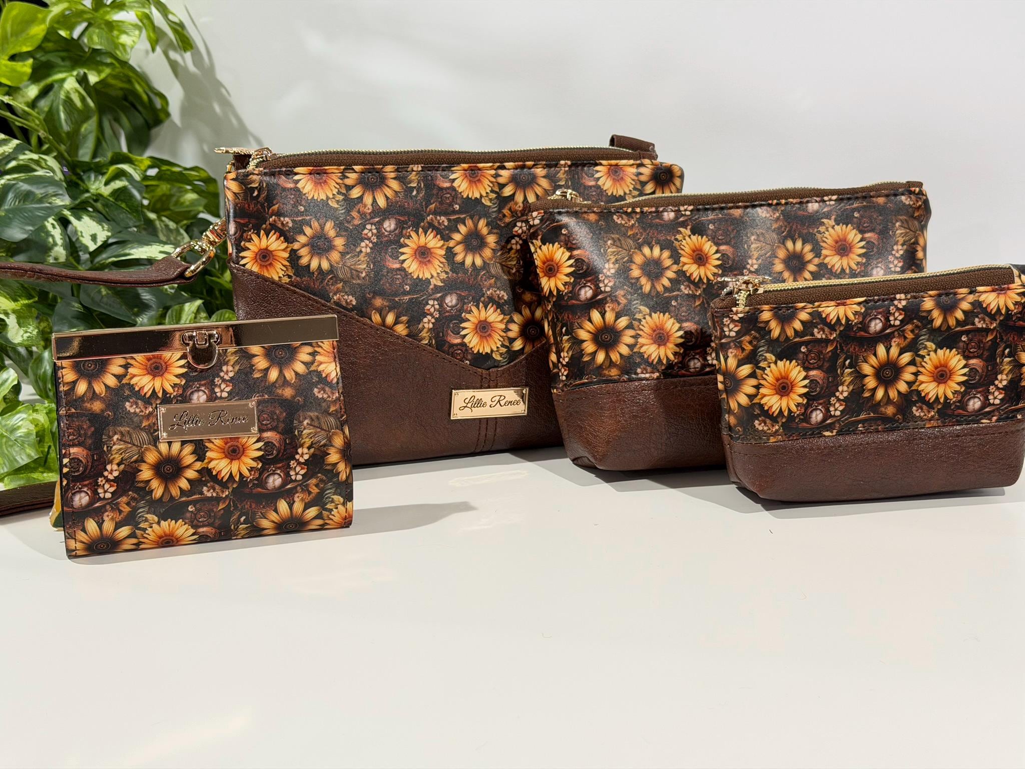 Bright, cheerful, and beautifully functional, the Sunflower Harlequin Collection brings a touch of sunshine to your everyday accessories. Featuring a striking sunflower and harlequin purse, this coordinated set includes a stylish purse, medium and small essential pouches, and a practical accordion wallet designed to keep you organized in style.